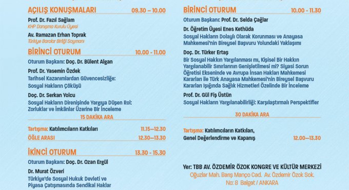 Kamu Hukukçuları Platformu'nun, Kadir Has Üniversitesi’nin ev sahipliğinde 18 Ekim 2024 tarihinde İstanbul'da gerçekleştirilecek olan "HAK ARAMA ÖZGÜRLÜĞÜNÜN ETKİSİZLEŞTİRİLMESİ" temalı XII. Toplantısının program bilgisi ekte yer almaktadır.